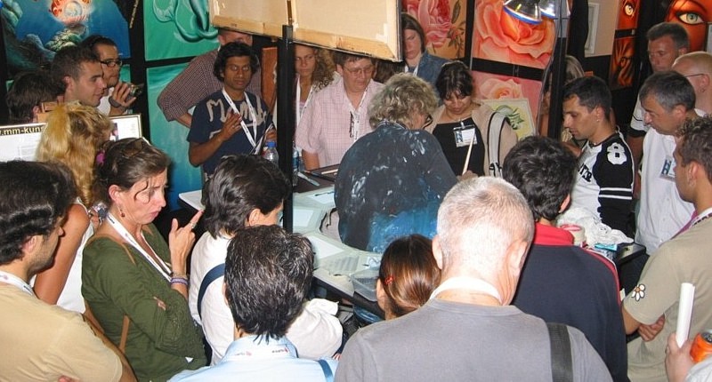 Kaum zu glauben: 12 Bilder in 30 Minuten durch die "Fließbandmaltechnik"! Inspiriert wurde Manfred Mertz