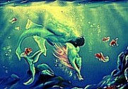 Hier taucht ein Mann ins Wasser und träumt von der Meerjungfrau, der er